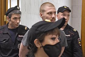 Ходатайство о продлении срока ареста бывшим оперативникам УВД по Западному административному округу Москвы, проходящим по делу о фальсификации материалов уголовного дела в отношении журналиста Ивана Голунова, Игорю Ляховцу, Роману Феофанову, Максиму Уметбаеву, Акбару Сергалиеву, в Басманном районном суде.