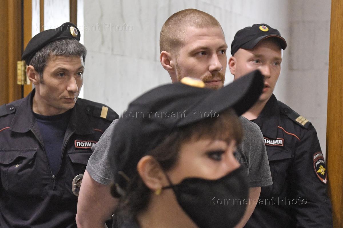 Правосудие Ходатайство о продлении срока ареста бывшим оперативникам УВД по Западному административному округу Москвы, проходящим по делу о фальсификации материалов уголовного дела в отношении журналиста Ивана Голунова, Игорю Ляховцу, Роману Феофанову, Максиму Уметбаеву, Акбару Сергалиеву, в Басманном районном суде.