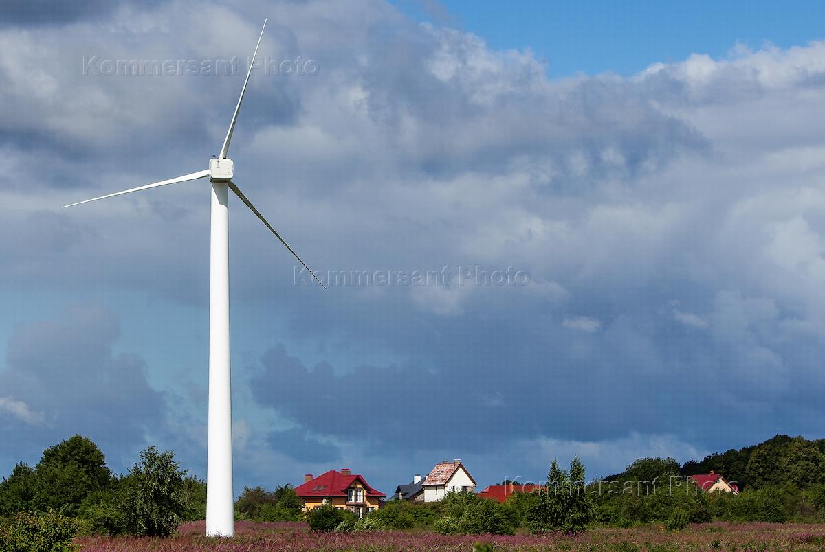 Ветрогенераторные установки Зеленоградской ветряной электростанции (ВЭС) в поселке Куликово…