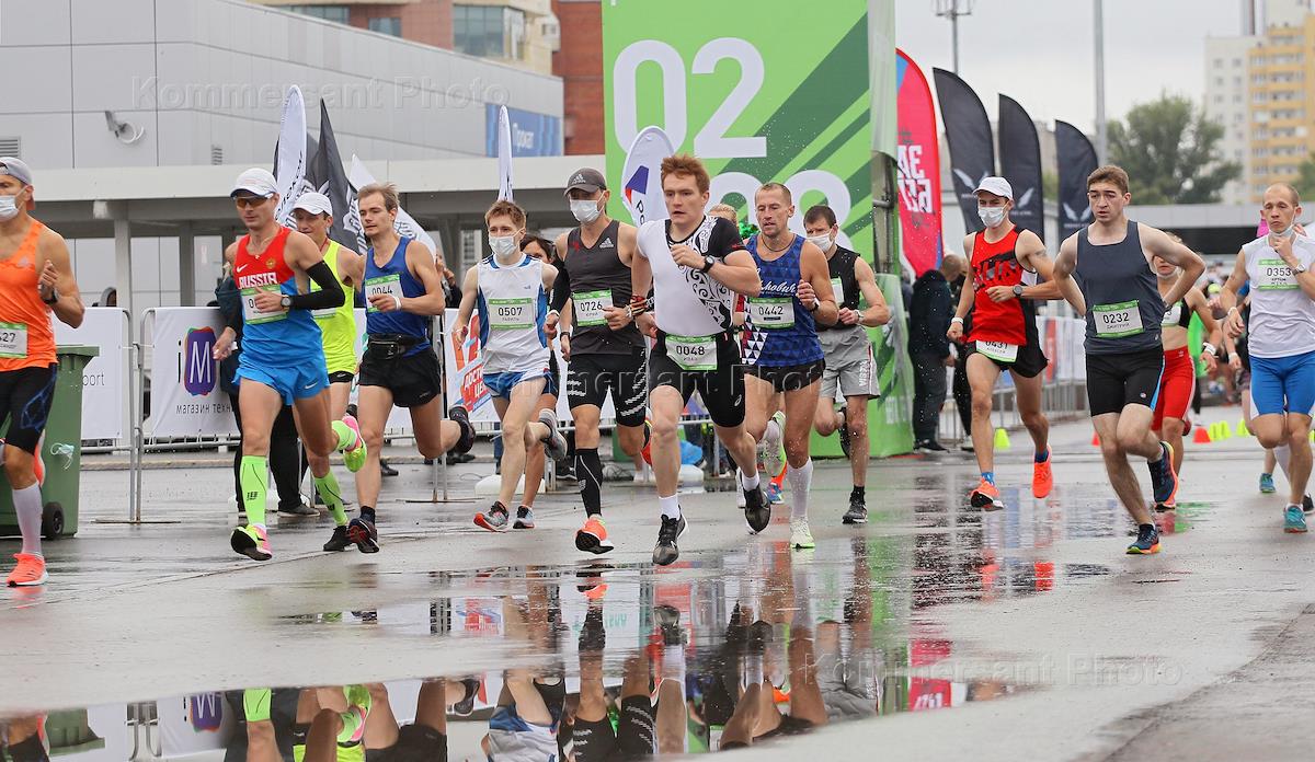 Ежегодный полумарафон "Беги, герой" в Нижнем Новгороде. Участники во время забега.
