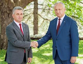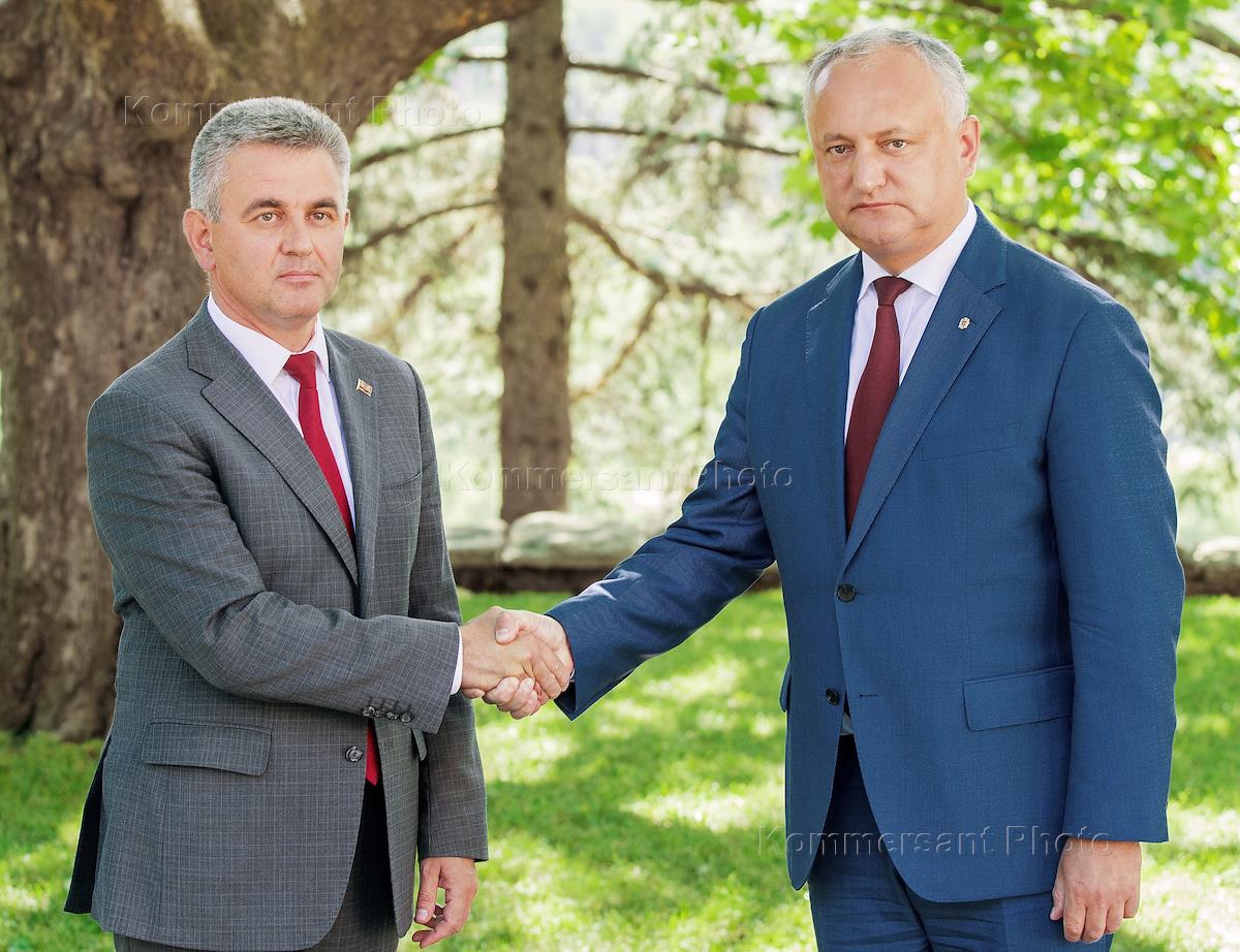Президент Приднестровья Вадим Красносельский (слева) и президент Молдовы Игорь Додон (справа) во…