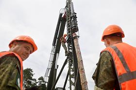 Армия и ВПК Демонстрация технических характеристик уникального образца техники Железнодорожных войск Универсального сваебойного агрегата УСА-2М в работе.
