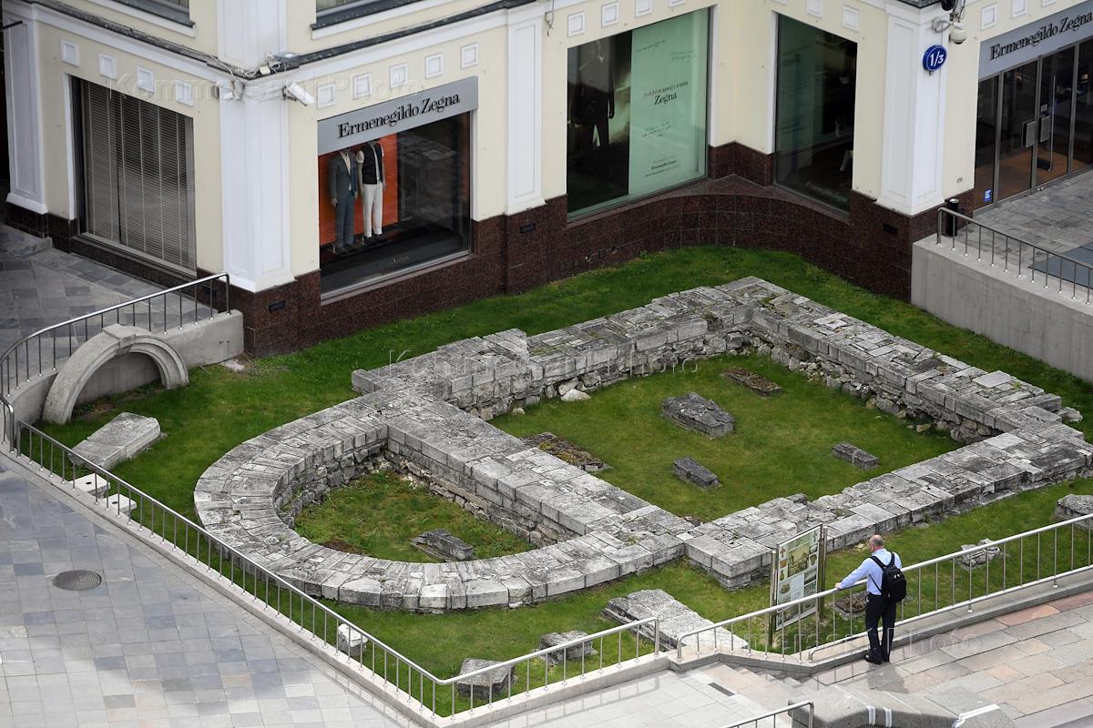 Виды Москвы. Фундамент церкви Троицы в Полях, снесенный в 1934 году, на улице Лубянка.