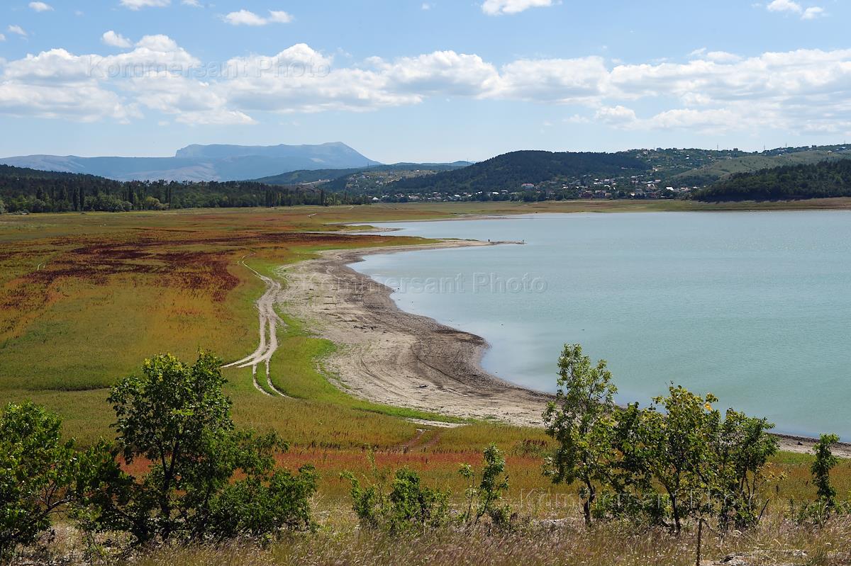 Виды Крыма. Обмелевшее Симферопольское водохранилище, обеспечивающее город питьевой водой.
