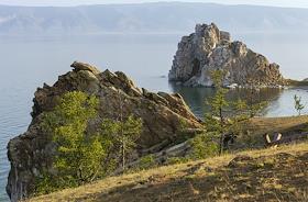 Виды острова Ольхон и озера Байкал. Скала Шаманка на мысе Бурхан.