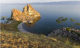 Виды острова Ольхон и озера Байкал. Скала Шаманка на мысе Бурхан на закате.