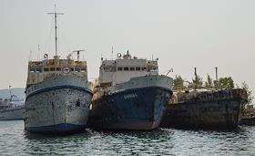 Виды озера Байкал. Пристань в порту Байкал. Старые корабли на приколе.