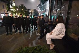 Виды вечерней Москвы. Жанровая фотография. Сотрудники служб метрополитена устанавливают строительные…