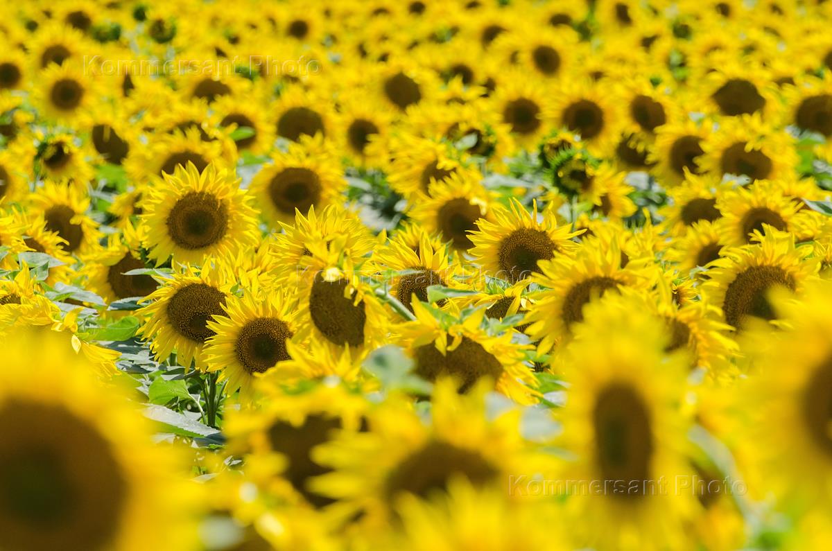 Жанровая фотография. Желтый подсолнух возле поля с пшеницей.