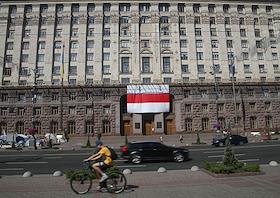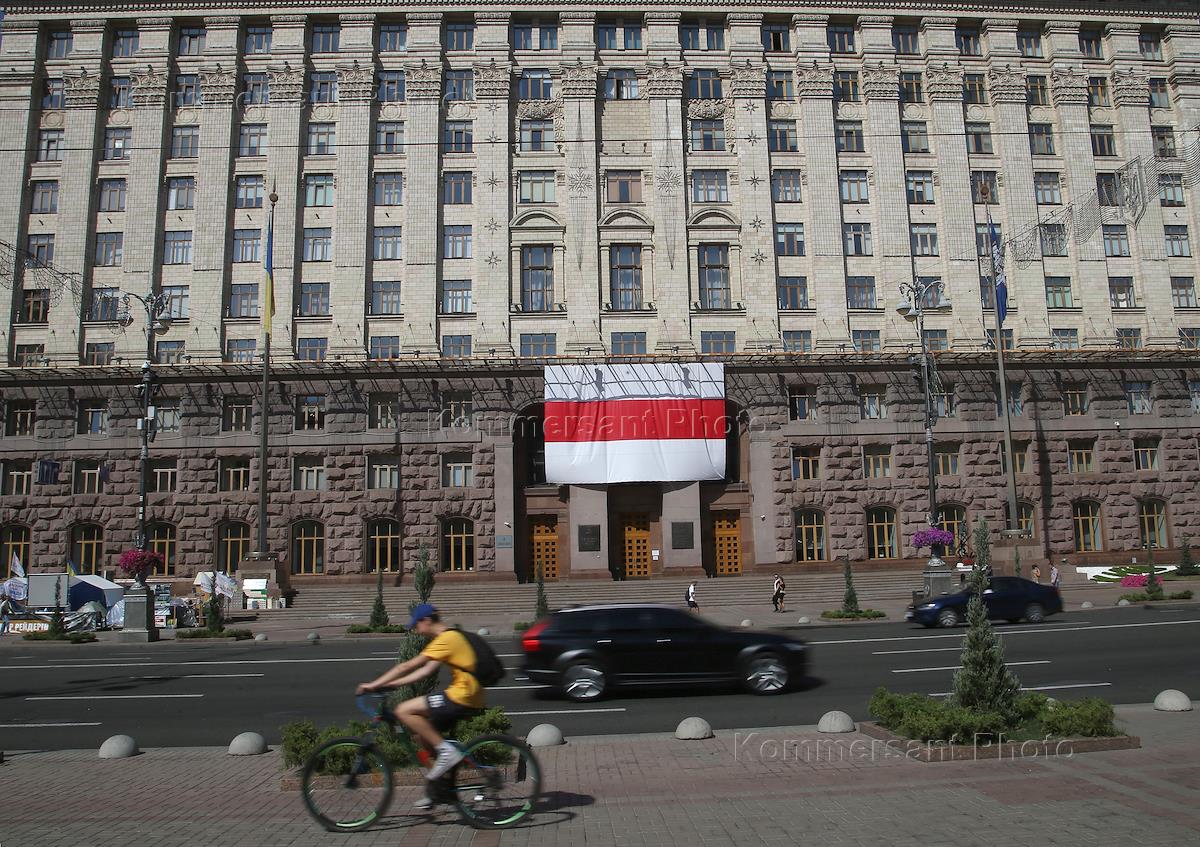 Общество На здании мэрии Киева вывесили исторический флаг Великого Княжества Литовского (ВКЛ) и официальный флаг Белорусской Народной Республики (1918—1919), в знак поддержки белорусских протестующих.