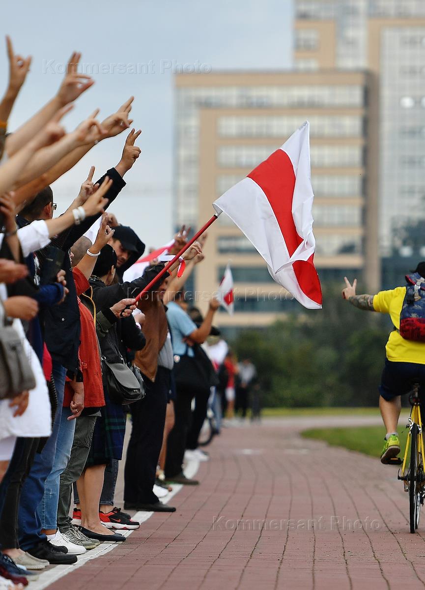Политическая ситуация в Минске. Акции сторонников оппозиции "Цепь покаяния". Жанровая фотография.…