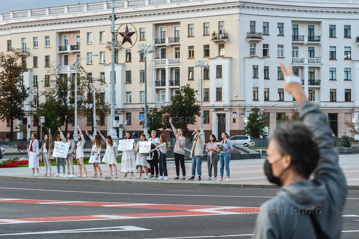 Белоруссия. Минск. Участницы акции в поддержку задержанных и пострадавших во время протестов.