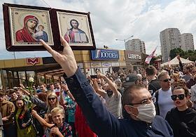 Участники акции в память по погибшему во время протестов против официальных результатов голосования…