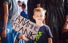 Жанровая фотография. Мальчик с плакатом "ДАЙ МНЕ ФАNK".