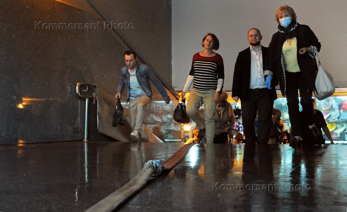 Последствия ливня в Москве. Откачивание воды из подтопленного подземного перехода.
