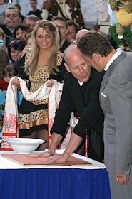 Американский актер Брюс Уиллис (справа) и телеведущая Тина Канделаки (слева) на премьерном показе…
