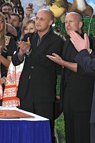 Американский актер Брюс Уиллис (справа) на премьерном показе мультфильма "Лесная братва" в…