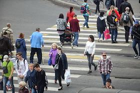 Виды Санкт-Петербурга. Жанровая фотография. Пешеходы во время перехода улицы по наземному…