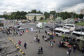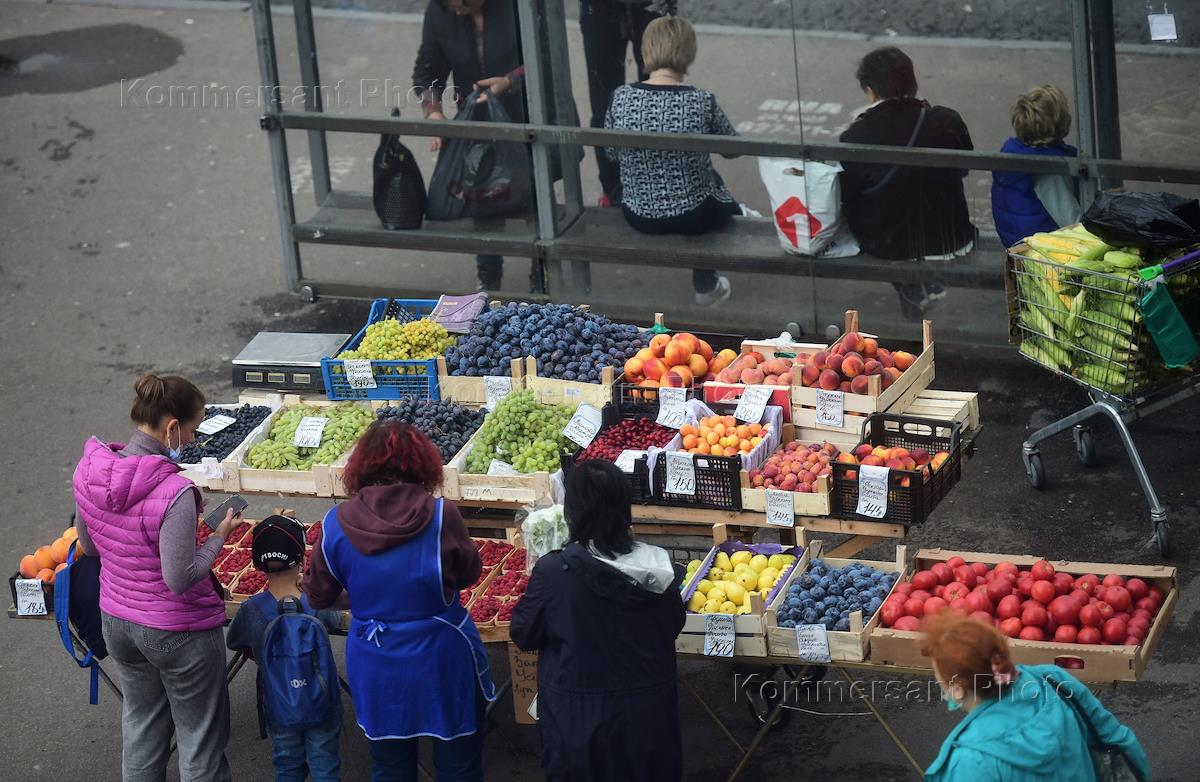 Виды Санкт-Петербурга. Жанровая фотография. Покупатели возле стихийного уличного овощного рынка у…