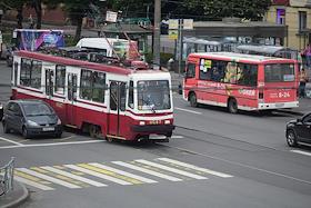 Виды Санкт-Петербурга. Жанровая фотография. Трамвай во время движения по маршруту.