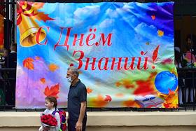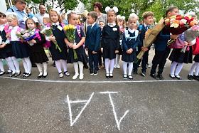 Праздник "День знаний", посвященный началу нового учебного года. Ученики на школьной линейке.