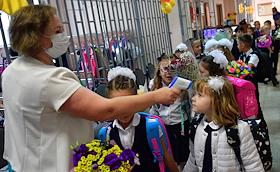 Праздник "День знаний", посвященный началу нового учебного года. Измерение температуры тела у…