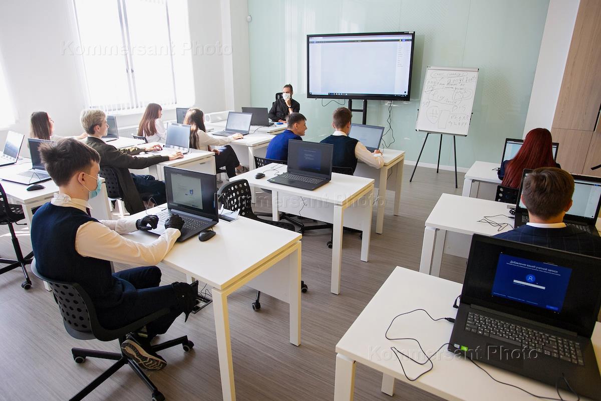День знаний (1 сентября) в школе №215 Екатеринбурга. Ученики в классе робототехники.