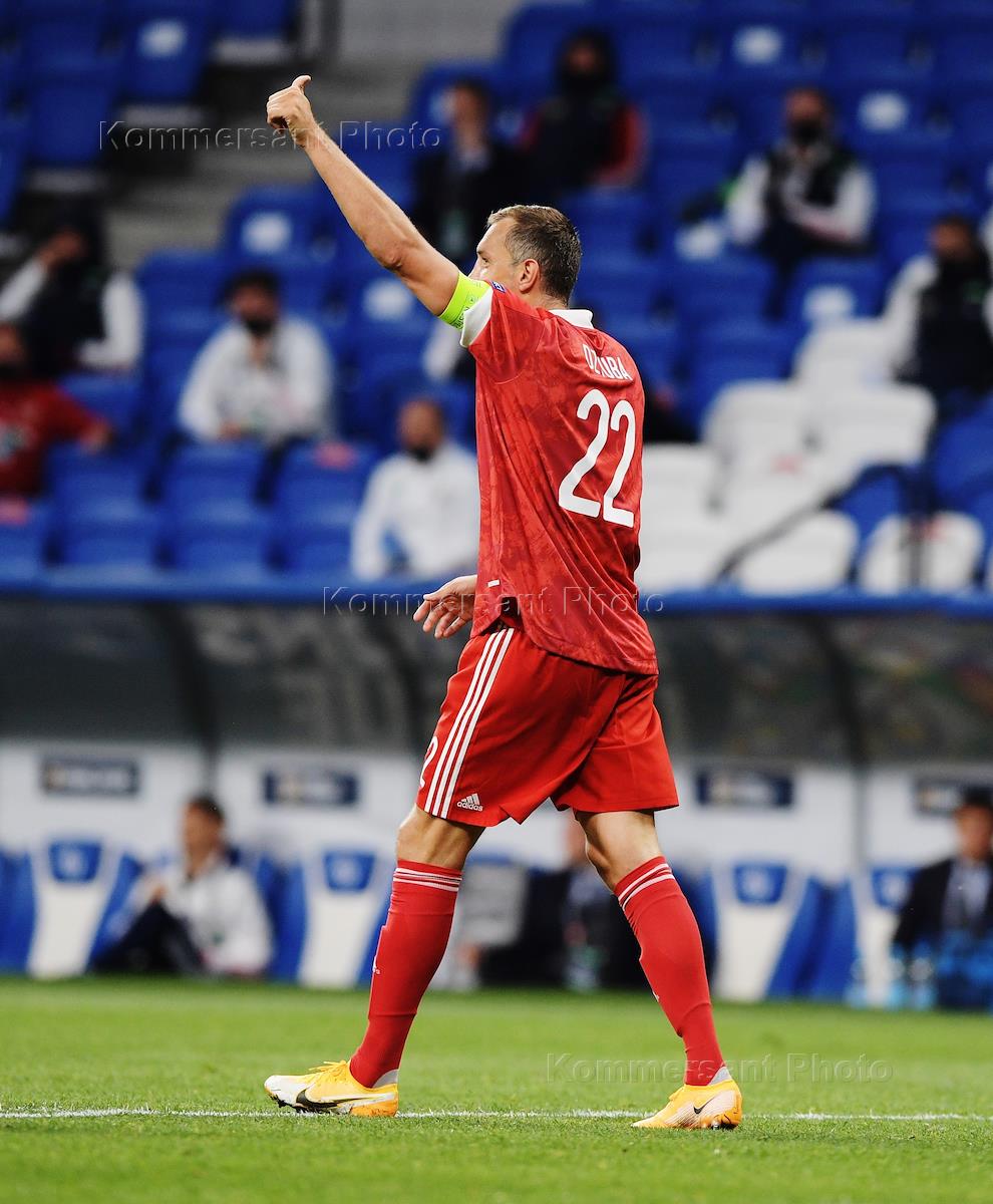 Лига наций УЕФА. Матч между национальными сборными России и Сербии на стадионе "ВТБ Арена". Игрок…