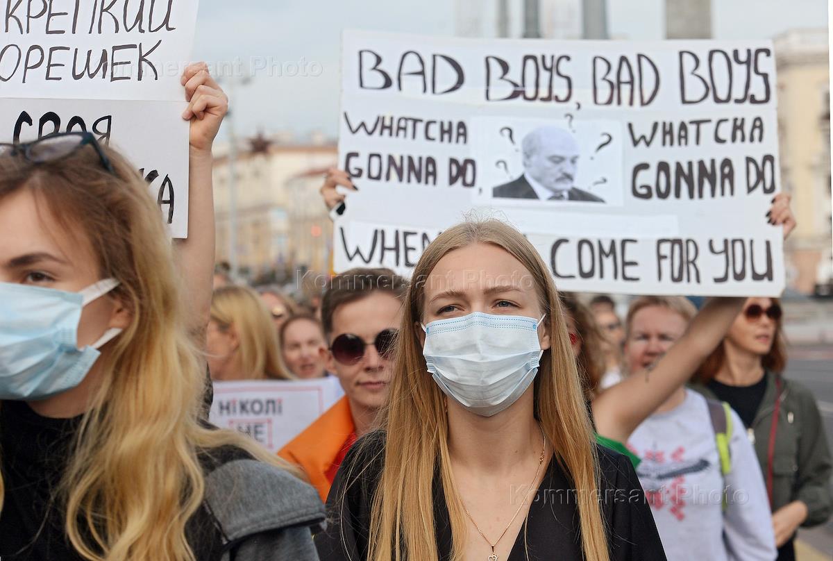 Участницы женского марша мира на проспекте Независимости. Со дня выборов президента Белоруссии 9…