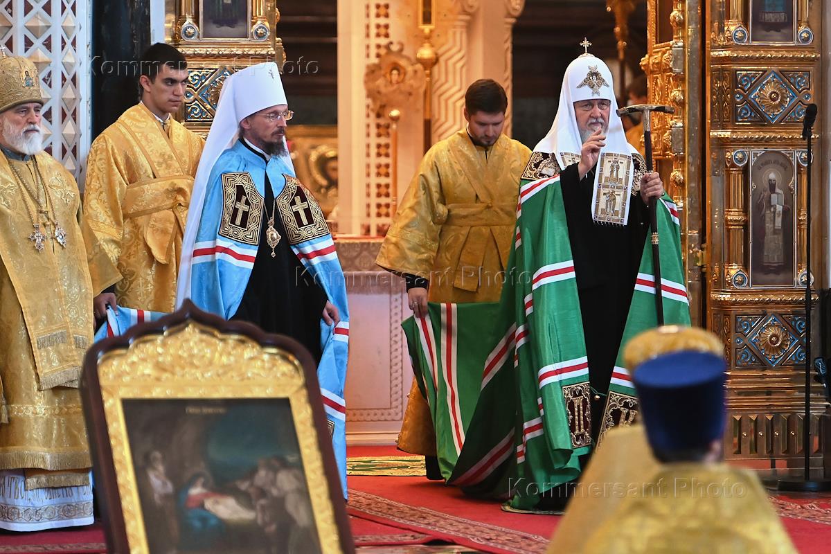 Патриарх Московский и всея Руси Кирилл (в центре) во время церемонии (чина) возведения в сан…