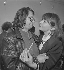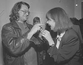 Певец Александр Градский (слева) и поэтесса Татьяна Щербина (справа) во время встречи.