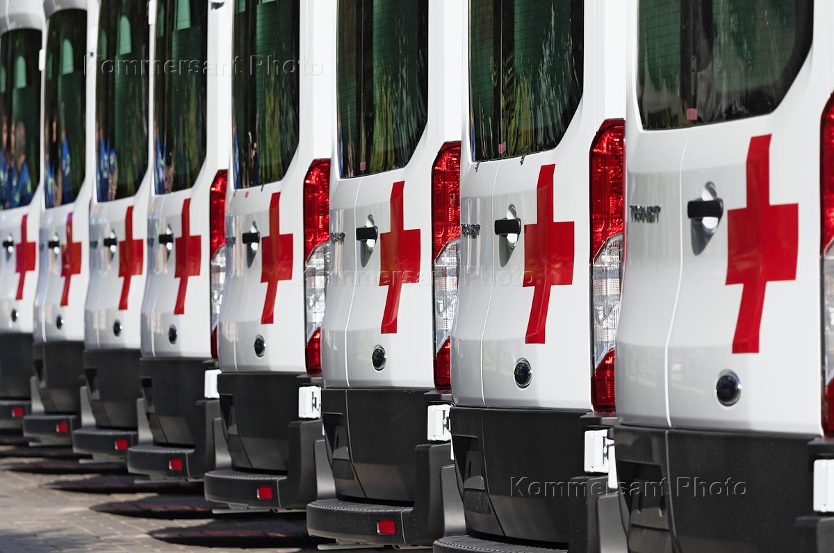 Передача новых автомобилей скорой помощи медицинским работникам.