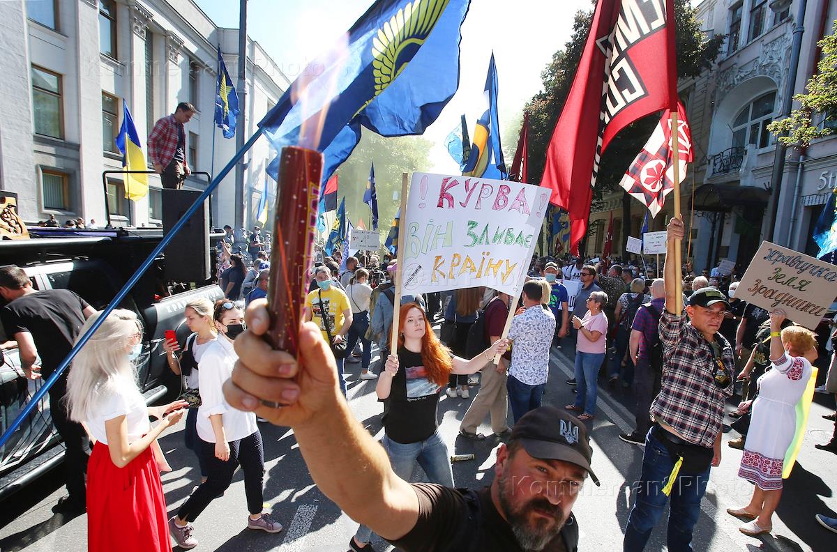 Пикет представителей "Движения сопротивления капитуляции" возле здания Верховной Рады Украины.