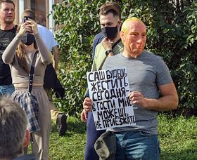 Политическая ситуация в Минске. Участники акции протеста на улице города.