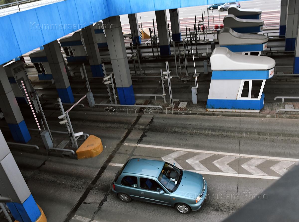 Работа аварийных комиссаров компании "Автодор". Жанровая фотография. Автомобиль на пункте взимания…