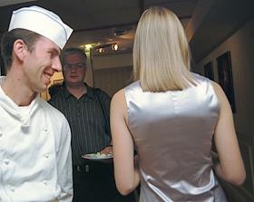 Шеф-повар и официантка на презентации рекламной кампании водки "Абсолют" в одном из ресторанов.