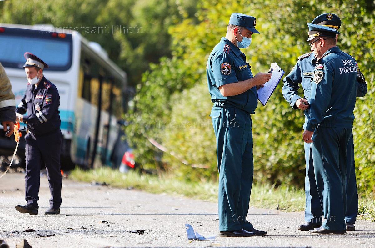 Происшествия и конфликты Дорожно-транспортное происшествие (ДТП) с участием автобуса и грузовика в Калининградской области. ДТП произошло на дороге по маршруту следования рейсового автобуса Калининград - Янтарный на перекрестке у населенных пунктов Круглово и Переславское. В результате ДТП пострадало 14 человек, семь погибших.
