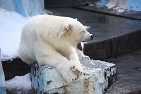 Новосибирский зоопарк имени Ростислава Шило. Белый полярный медведь в вольере.