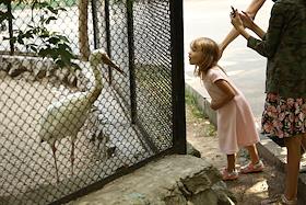 Новосибирский зоопарк имени Ростислава Шило. Жанровая фотография. Посетители у птичьего вольера.…