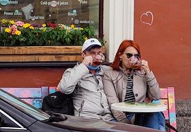 Жанровая фотография. Мужчина пьет пиво в кафе.