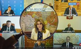 Жанровая фотография. Трансляция совещания президента России Владимира Путина с членами Правительства…