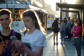 Виды Санкт-Петербурга. Жанровая фотография. Вечерний Невский проспект. Пассажиры на остановке…