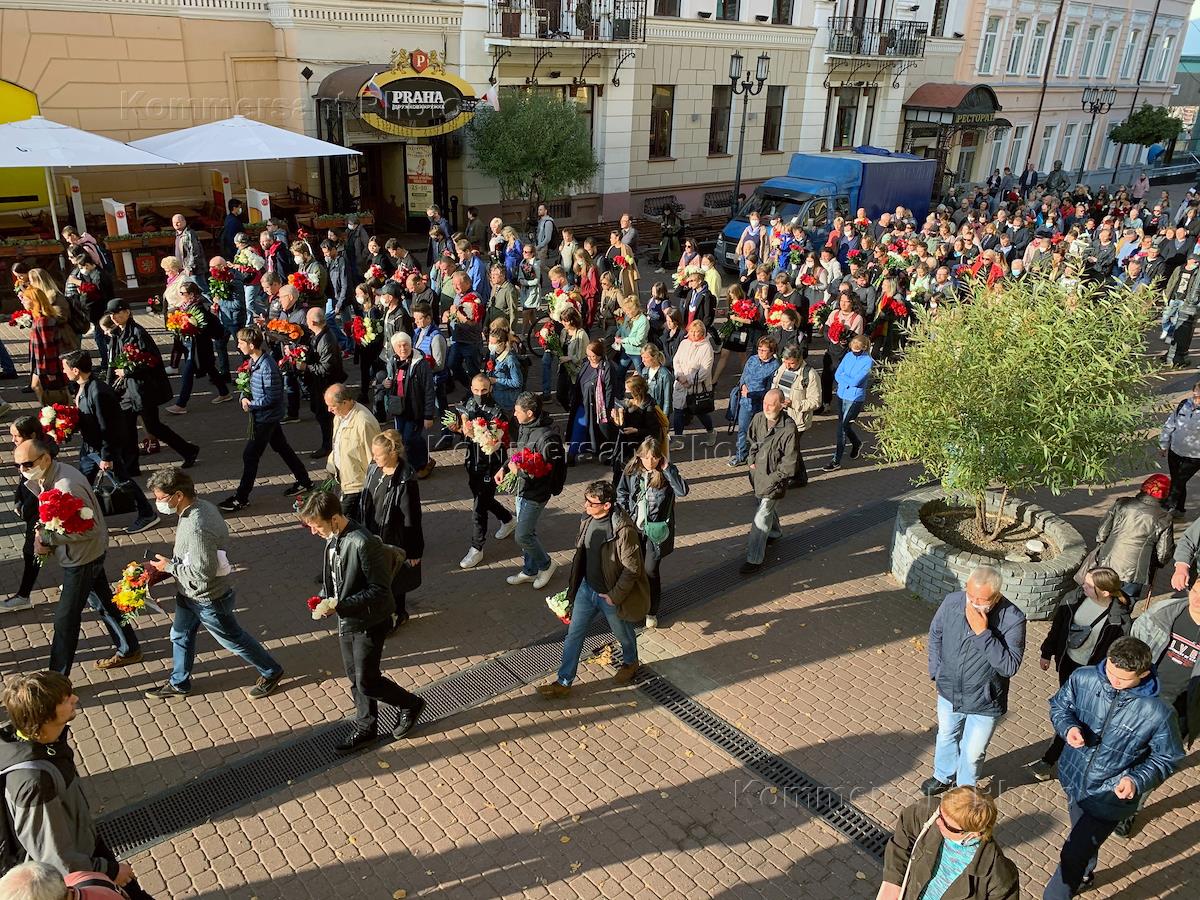 Шествие по пешеходной улице после церемонии прощания с погибшей журналисткой Ириной Славиной.