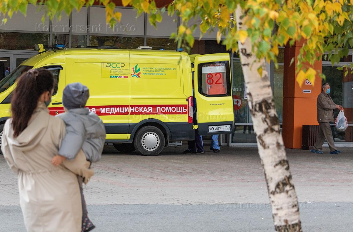 Жанровая фотография. Автомобиль скорой медицинской помощи у приемного отделения казанской городской…