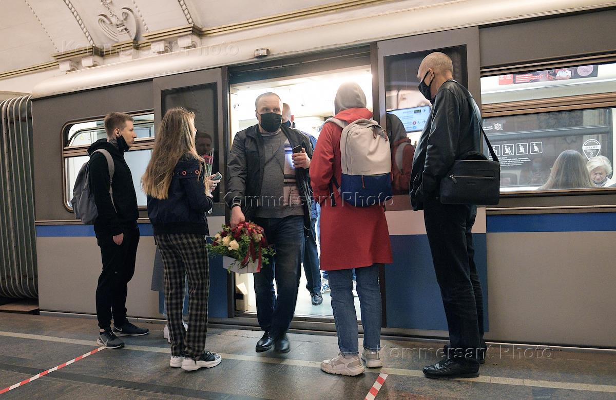 Жанровая фотография. Пассажиры в медицинских масках в московском метро.