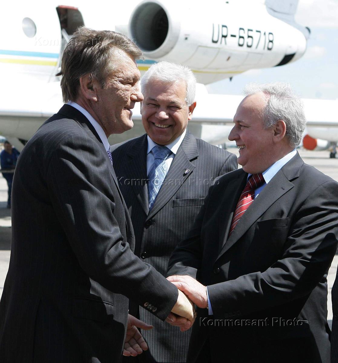 Президент Украины Виктор Ющенко (слева), руководитель Донецкой областной государственной…