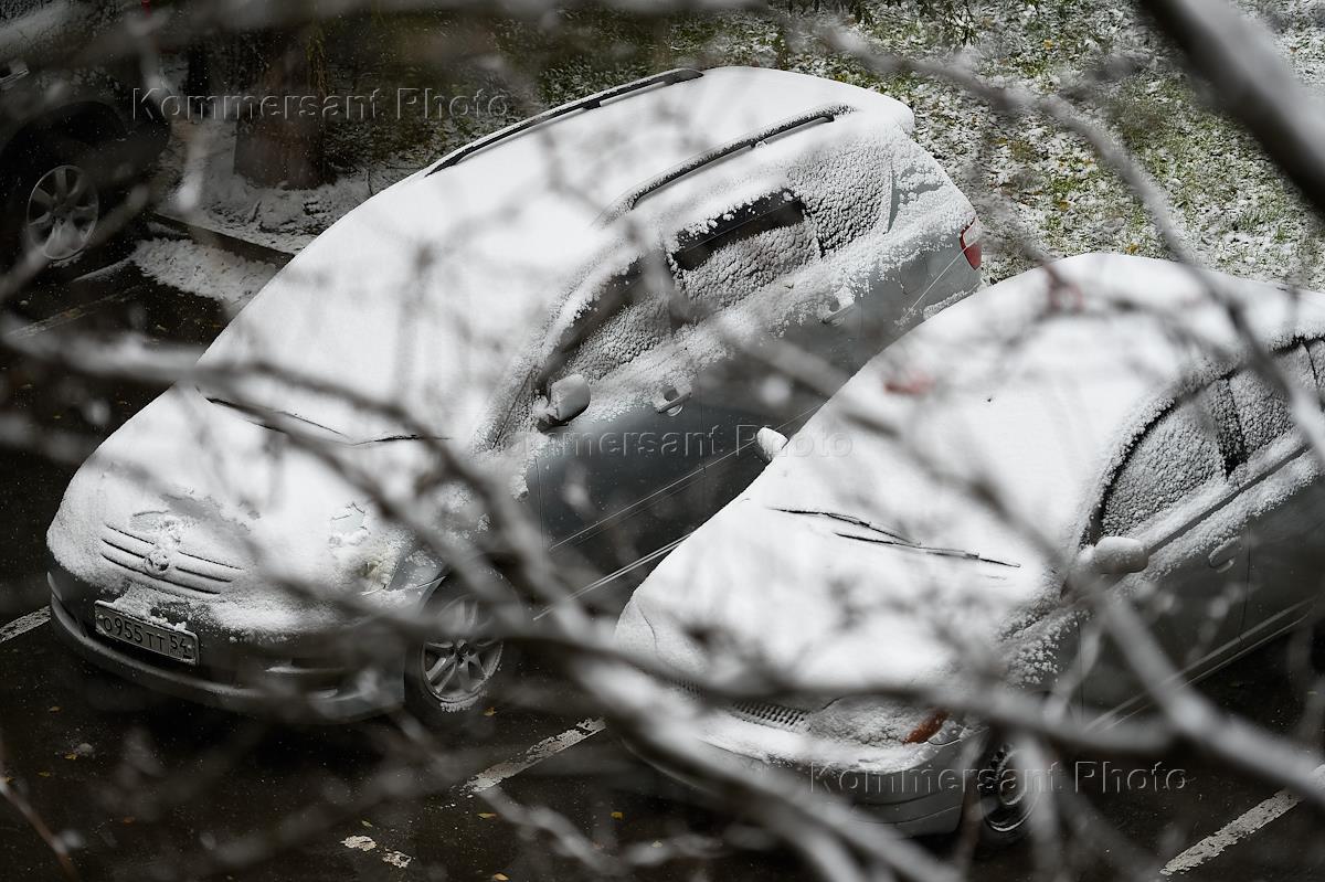 Жанровая фотография. Первый снег в Новосибирске. Автомобили в снегу.