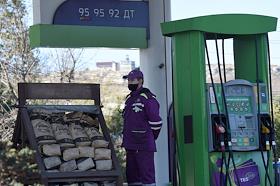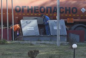 Жанровая фотография. Сотрудник автозаправочной станции (АЗС) у заправочной колонки.