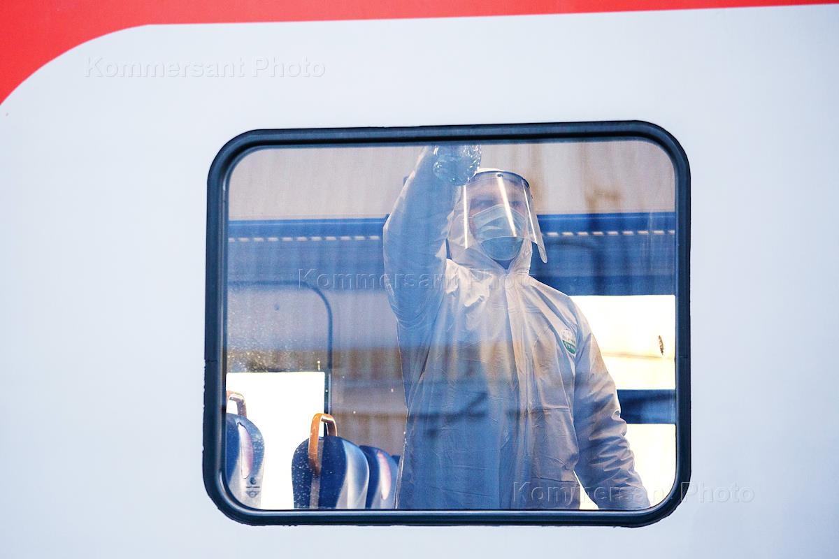 Комплекс противоэпидемических мероприятий в пригородных поездах в рамках пресс-тура организованного Горьковской железной дорогой.