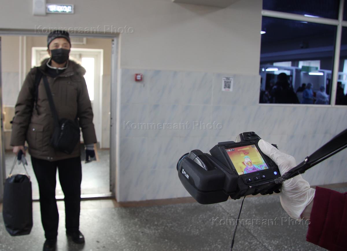 Пункт пропуска через российско-китайскую границу в Благовещенске. Врач во время обследования…